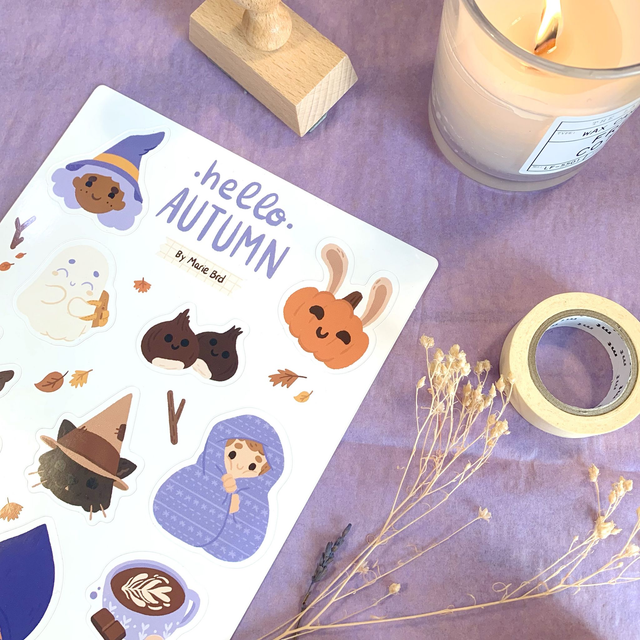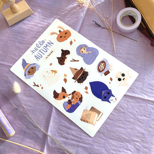 Une série d’autocollants magiques autour du thème de l’automne ! Une sorcière mignonne, un renard artiste, un lapin qui se prend pour une citrouille, des grimoires enchantés…